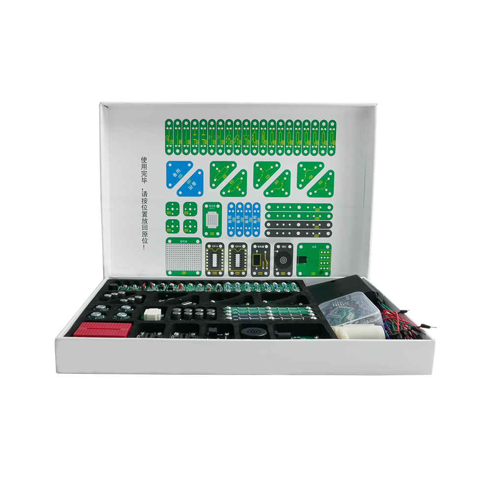 其次由分立元件由洞洞板焊接組成的案例包括:1組裝與測試指紋鎖電子控制系統(tǒng)模型、2制作土壤濕度測試器、3制作簡易水質(zhì)探測儀、4制作簡易光控延時燈電路等實驗。