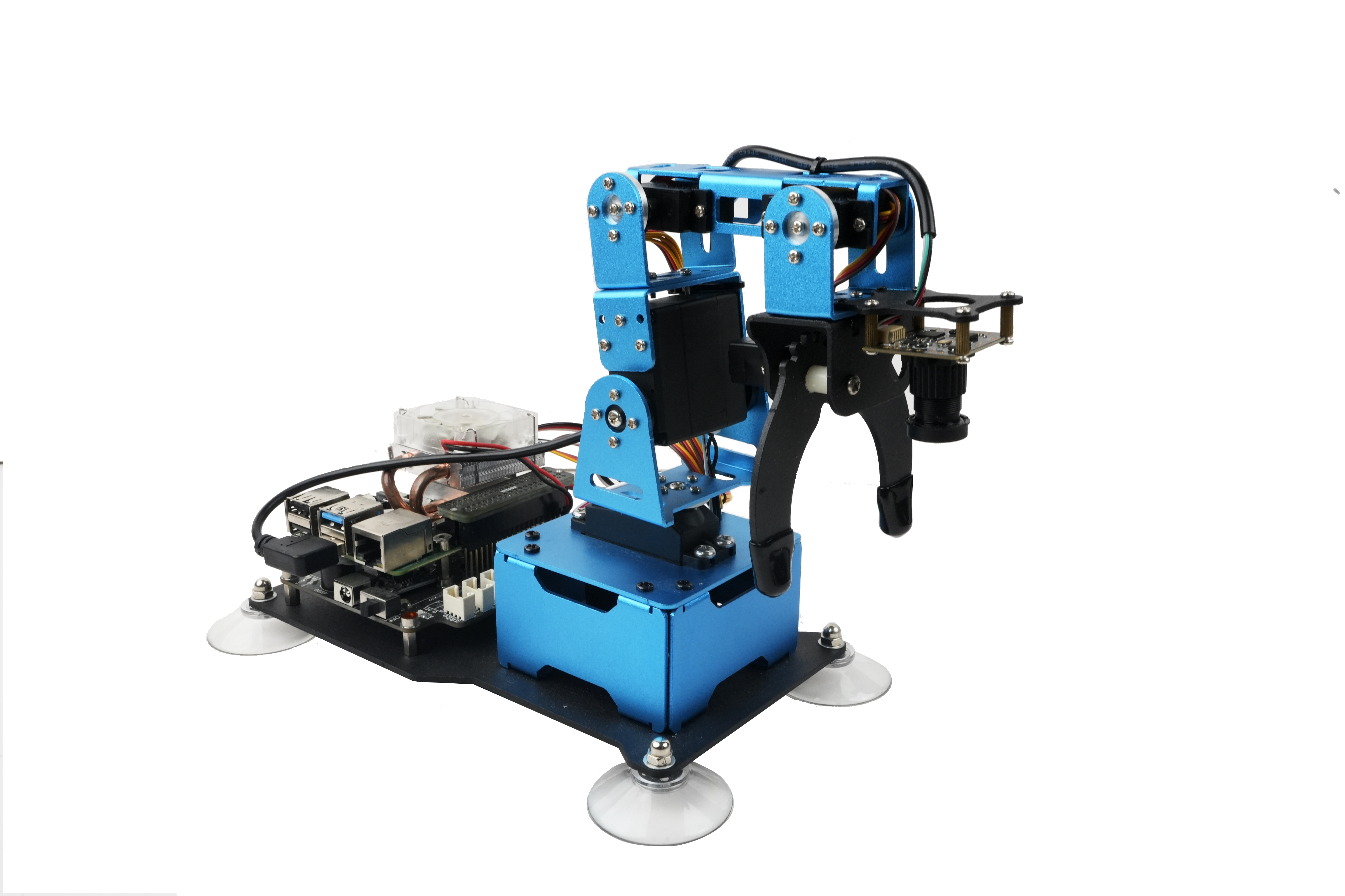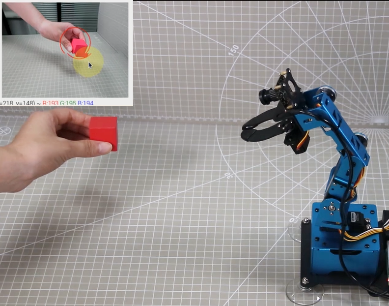 通過構(gòu)建場景與(3)-(7)中AI視覺、AI語音、機器人運動學(xué)、ROS激光雷達(dá)、全系列傳感模塊等相結(jié)構(gòu),實現(xiàn)場景、多傳感器器綜合實驗。例如,a)顏色分揀:通過對目標(biāo)色塊進(jìn)行顏色識別和坐標(biāo)定位,可以輕松控制機械臂實現(xiàn)顏色識別、抓取、分揀。b)智能碼垛:通過對目標(biāo)物品進(jìn)行識別和定位,可以輕松實現(xiàn)色塊碼垛的功能。c)目標(biāo)追蹤:通過對目標(biāo)色塊進(jìn)行視覺定位,利用機械臂的逆運動學(xué)算法,可以更好的對目標(biāo)色塊進(jìn)行捕捉和追蹤。