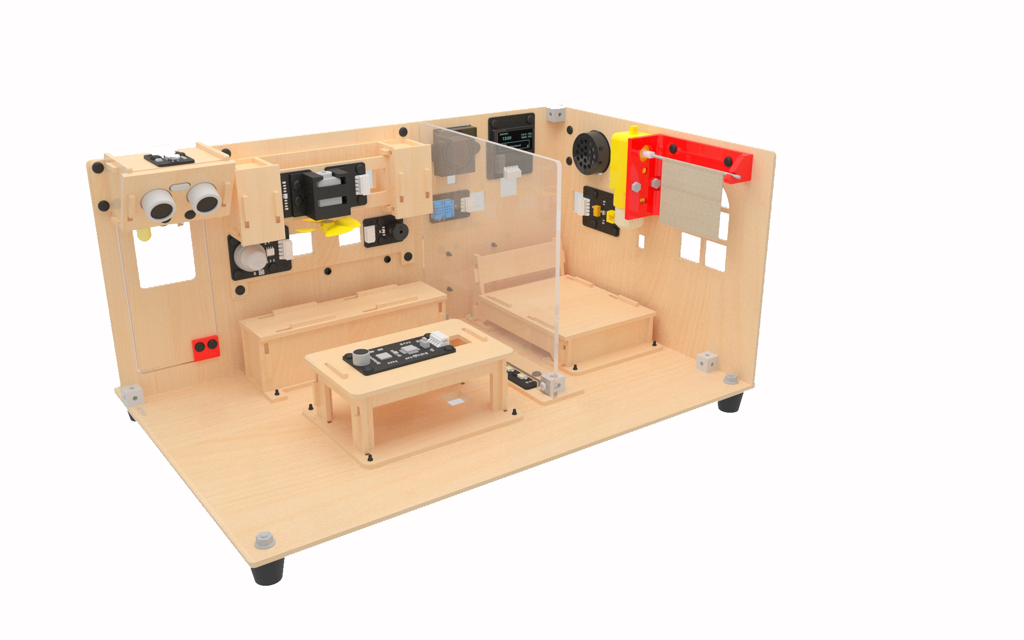 1、AI智能家居教學(xué)套件由AI主控板、擴(kuò)展板、傳感器與智能家居結(jié)構(gòu)套裝所組成,整體的AI智能家居結(jié)構(gòu)由各個AI功能模塊所組成,模塊項(xiàng)目之間相互獨(dú)立,可進(jìn)行模塊化項(xiàng)目式拆裝,整體場景可實(shí)現(xiàn)人工智能語音交互控制、物聯(lián)網(wǎng)手機(jī)APP通過WIFI進(jìn)行遠(yuǎn)程控制,以及人體交互感應(yīng)控制等功能,套件所含的所有傳感器可整體同時一起連接在1塊主板上進(jìn)行功能實(shí)現(xiàn)。