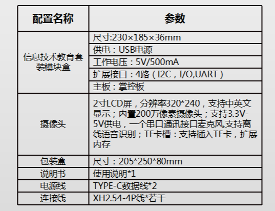 中小學(xué)信息技術(shù)教育套裝以掌控板主機(jī)模塊作為主板單元和傳感器單元組成,通過擴(kuò)展接口,主板與傳感器單元連接成功,無需外接繁雜的線路,搭配一條TYPE-C數(shù)據(jù)線就可以實(shí)現(xiàn)圖形化編程及MicroPython語言編程,是一種配套中小學(xué)信息技術(shù)物聯(lián)網(wǎng)與人工智能,在人工智能技術(shù)、物聯(lián)網(wǎng)技術(shù)等應(yīng)用領(lǐng)域有著十分重要意義的教育套裝。滿足中小學(xué)信息技術(shù)教材需求,可實(shí)現(xiàn)信息技術(shù)傳感與控制、開源硬件項(xiàng)目設(shè)計等內(nèi)容的教學(xué),實(shí)現(xiàn)游戲化教學(xué)、物聯(lián)網(wǎng)教學(xué)、STEAM教學(xué)等多種教學(xué)應(yīng)用。 通過平臺的學(xué)習(xí),可以掌握掌控板控制原理MicroPython語言的編程、物聯(lián)網(wǎng)技術(shù)以及人工智能技術(shù)。